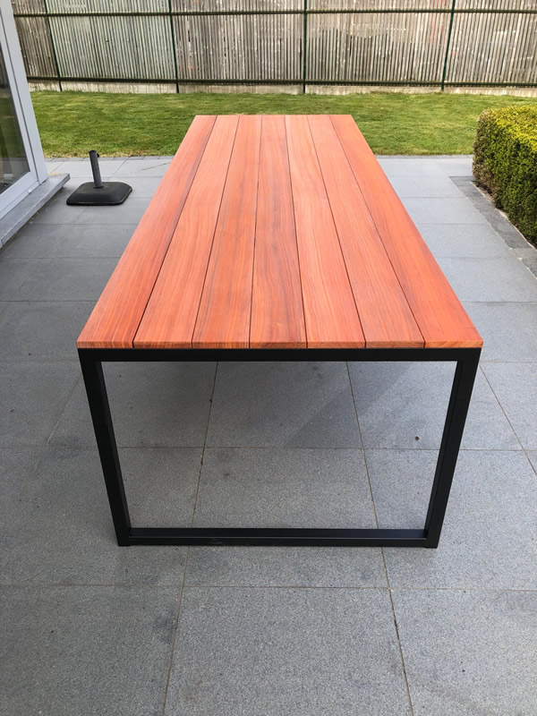 Voor onze tuintafels werken wij meestal met de houtsoort Padouk.